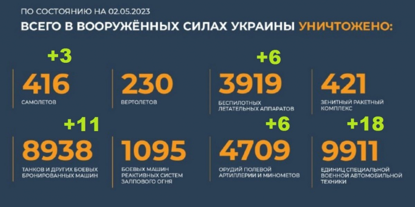 - Брифинг Министерства обороны Российской Федерации о ходе проведения специальной военной операции на территории Украины по состоянию на 4 мая 2023 года