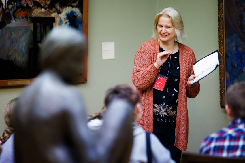 Людмила Жадан во время проведения экскурсии в Третьяковской галерее. Фото: Денис Зубин / ГТГ