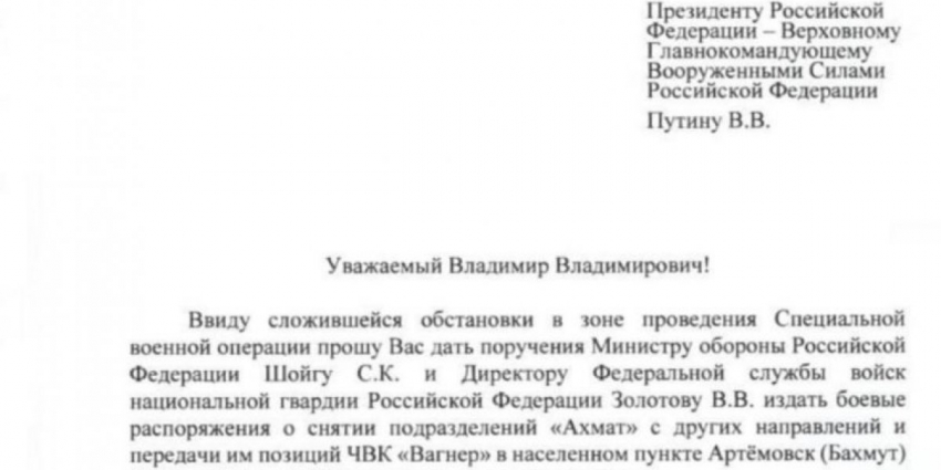 Также Рамзан Кадыров отправил Владимиру Путину письмо с просьбой о переброске «Ахмата» в Бахмут.