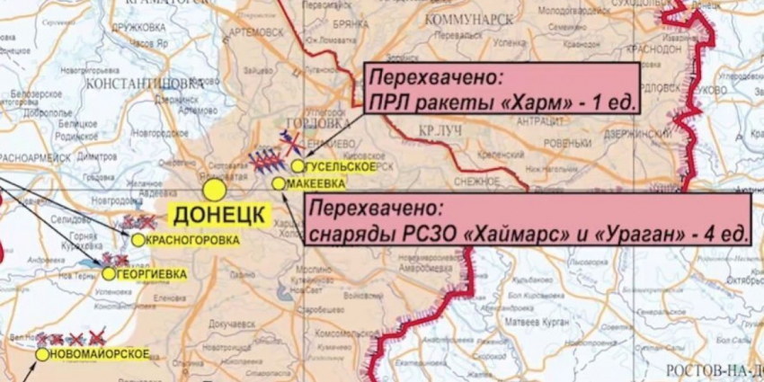 Средствами противовоздушной обороны (ПВО) уничтожены 5 украинских беспилотных летательных аппаратов в Луганской Народной Республике (ЛНР), перехвачены 10 снарядов РСЗО HIMARS и «Ураган», а также ракета HARM в ДНР, ЛНР и Запорожской области.