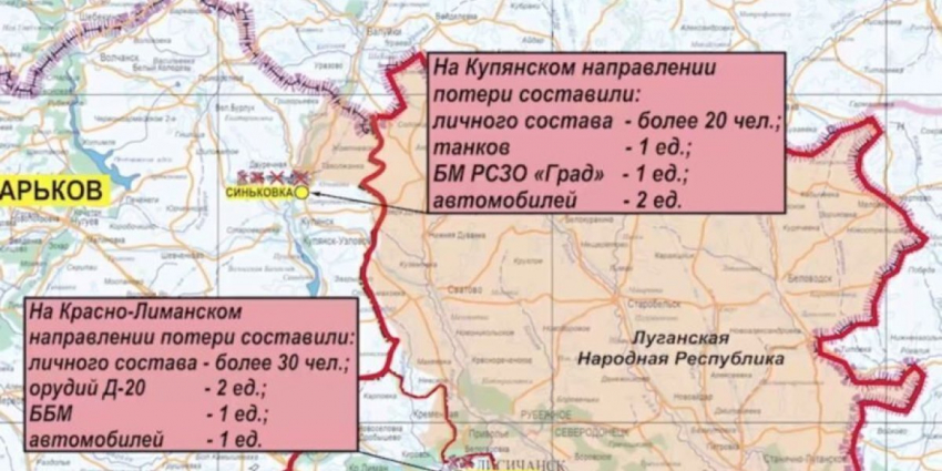 После завершения действия режима прекращения огня союзные силы нанесли удары по скоплениям живой силы и техники ВСУ, уничтожили 3 диверсионно-разведывательные группы (ДРГ) на Купянском и Лиманском направлениях. Ликвидированы более 80 украинских военнослужащих, боевая машина пехоты, бронетранспортер, 3 боевые бронемашины, 3 автомобиля.