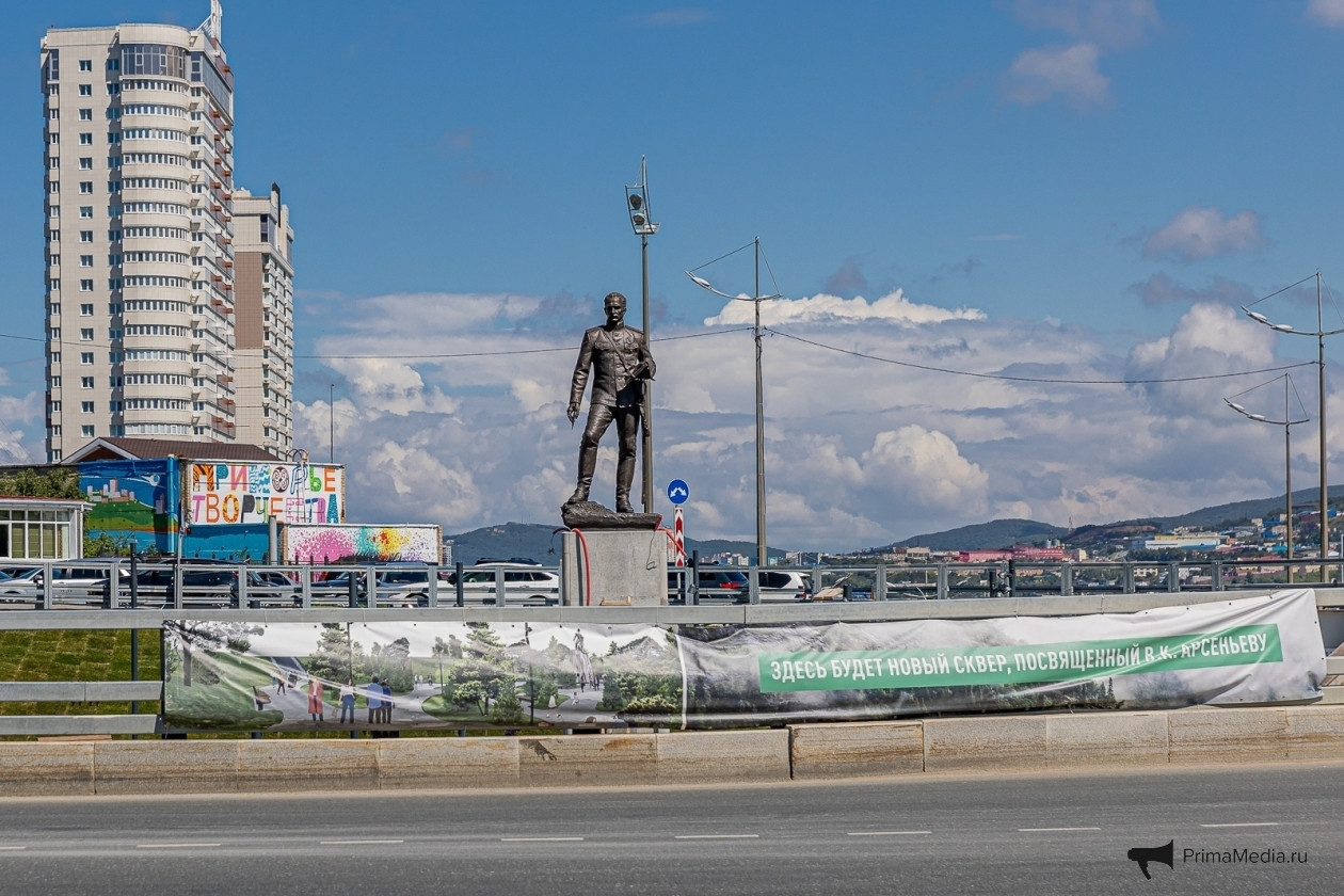 “Специалисты предложили для памятника легендарному ученому площадку на сопке в районе транспортного кольца и пешеходного перехода на фуникулере. Здесь есть хорошая возможность обустроить сквер, создать ландшафтную композицию с использованием таежных растений, дополнить другими элементами дизайна. Арсеньев будет смотреть на бухту Золотой Рог и Золотой мост. Фигура на высоком постаменте будет видна из разных точек города”, — рассказывал ранее мэр Владивостока Константин Шестаков.