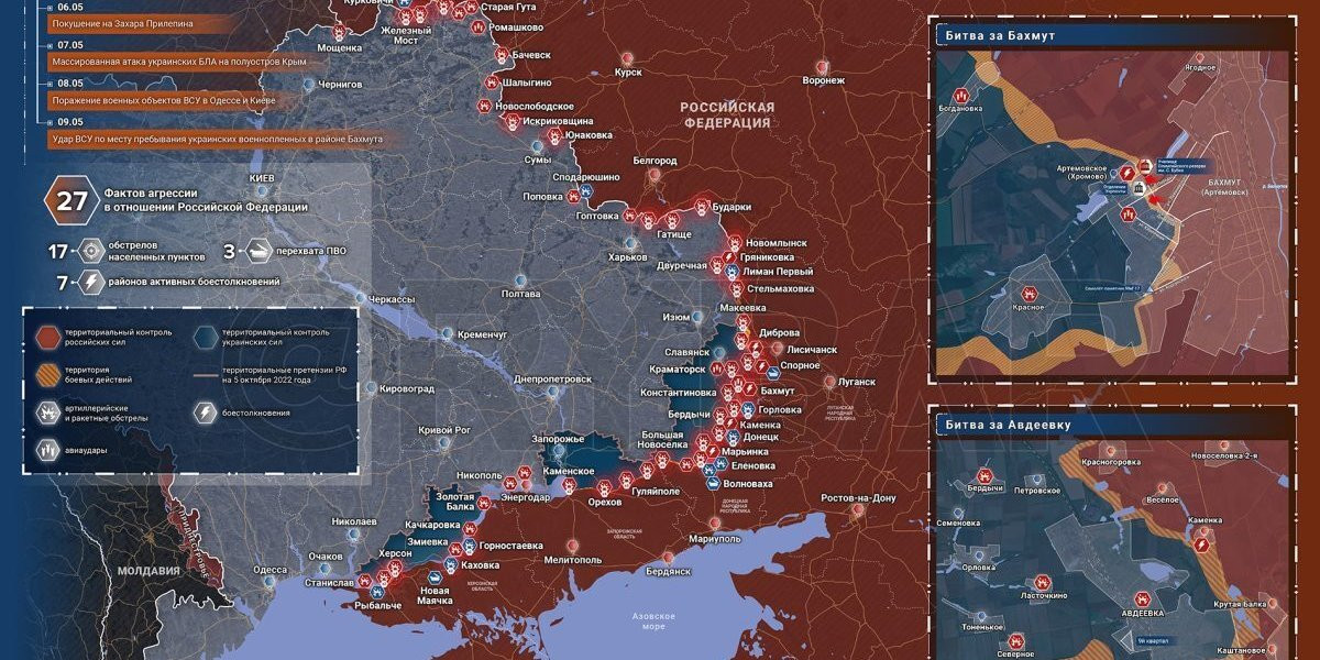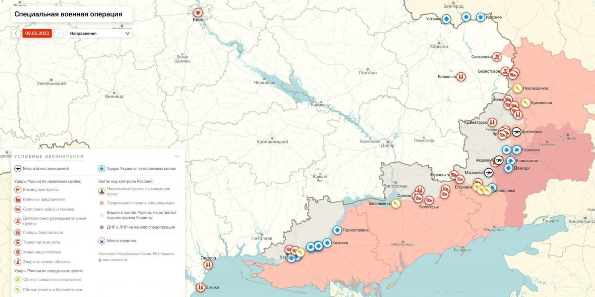 - Специальная военная операция на Украине: Карта военных действий и ситуация на фронтах вечером 9 мая 2023 года