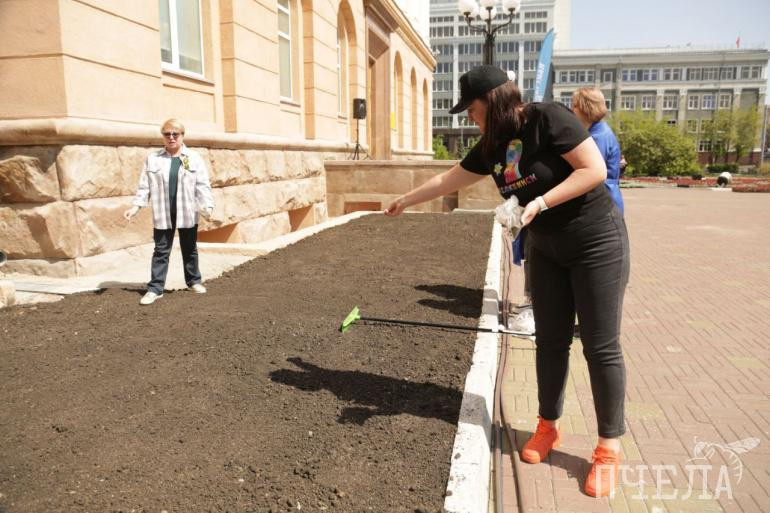 Участники акции засеяли семенами эшшольции две клумбы вокруг здания