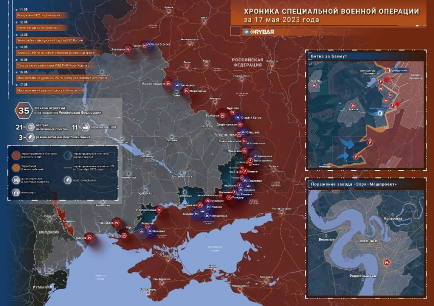 Свежие данные о специальной военной операции России на Украине на сегодня, 18.05.2023