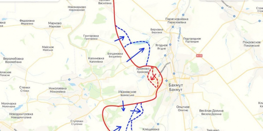 Ситуация под Бахмутом — Артемовском — карта военных действий сейчас