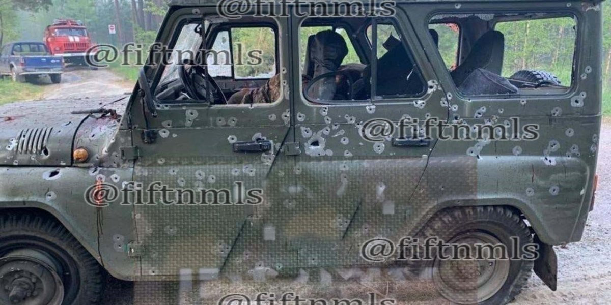 На кадрах результат работы нашей ДРГ: сожженный внедорожник ВСУ и изрешеченный пулями УАЗ с боевиками, машину расстреляна спереди и слева.