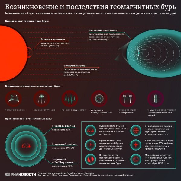 Возникновение и последствия геомагнитных бурь (инфографика)