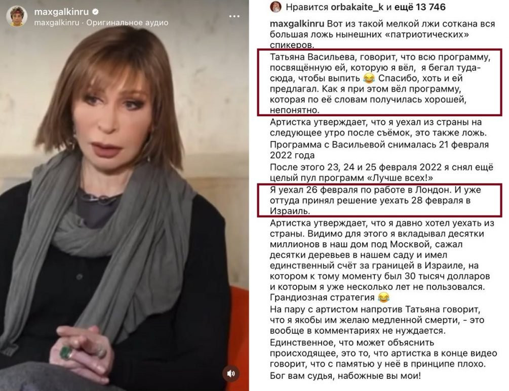 К тому же, артист высмеял слова актрисы, которая говорила, что на следующее утро он эмигрировал. Юморист отметил, что программу снимали 21 февраля, после этого он снял «целый пул» передач «Лучше всех!». А уехал 26 февраля в Лондон по работе, откуда через несколько дней улетел в Израиль.