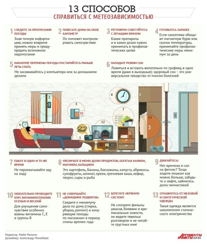 Смягчить воздействие магнитных бурь на организм можно, если в это время упорядочить питание. Для этого нужно ограничить употребление жареного и мучного, добавить в меню больше овощей, фруктов, зелени и клетчатки. Людям следует пить больше чистой воды, свести до минимума количество соли в рационе, так как она не дает организму выводить жидкость, а также повышает давление. Кроме того, крепкие чай и кофе стоит заменить на травяные напитки или настои. Люди с низким давлением могут принимать средства для повышения тонуса.