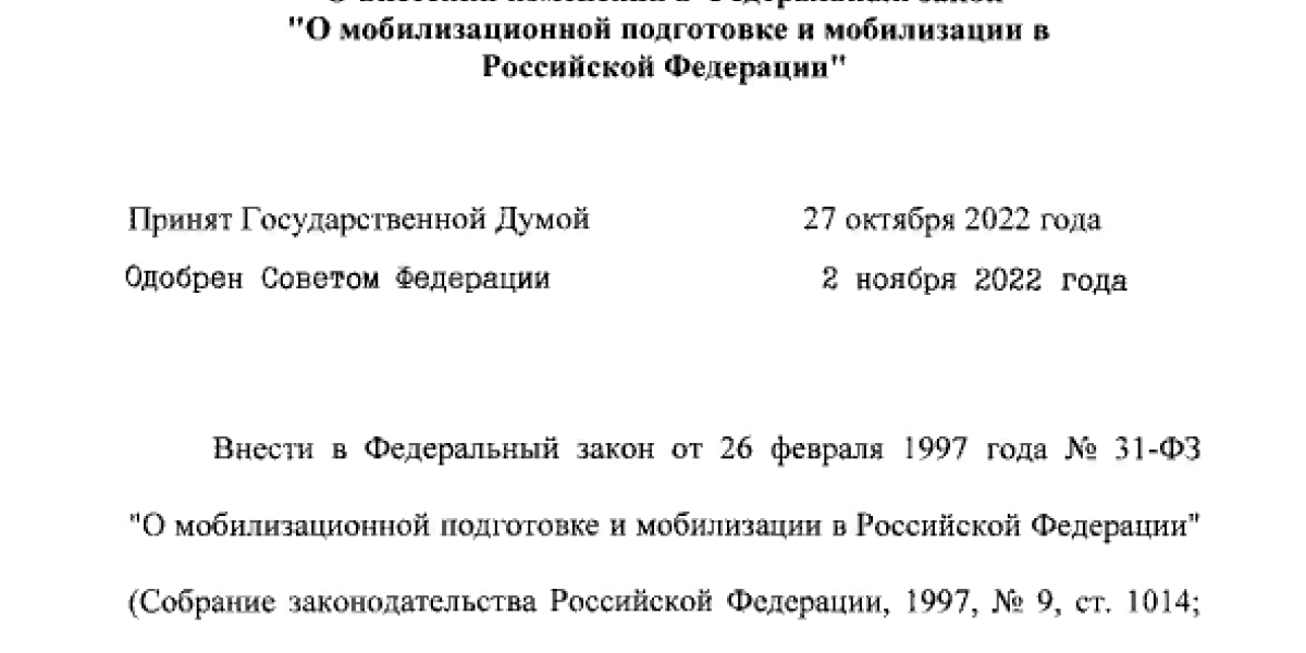 Путин подписал закон, согласно которому на военную службу в рамках мобилизации могут быть призваны граждане, имеющие неснятую или непогашенную судимость за некоторые тяжкие преступления.