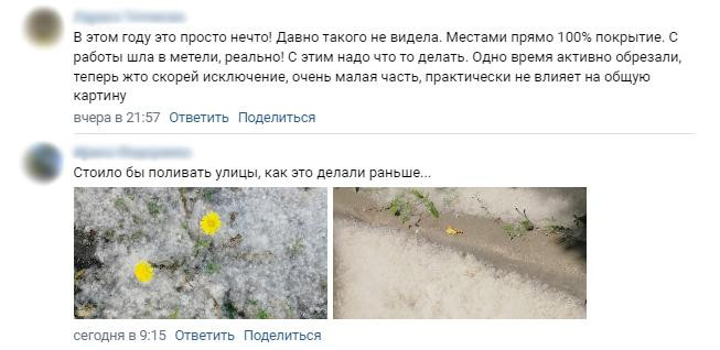 Стоит напомнить, что МЧС России опубликовало инструкцию по борьбе с тополиным пухом на своем официальном портале. В документе предлагают справляться с природным явлением с помощью воды, а когда пух «ляжет», то собирать его метлами.
