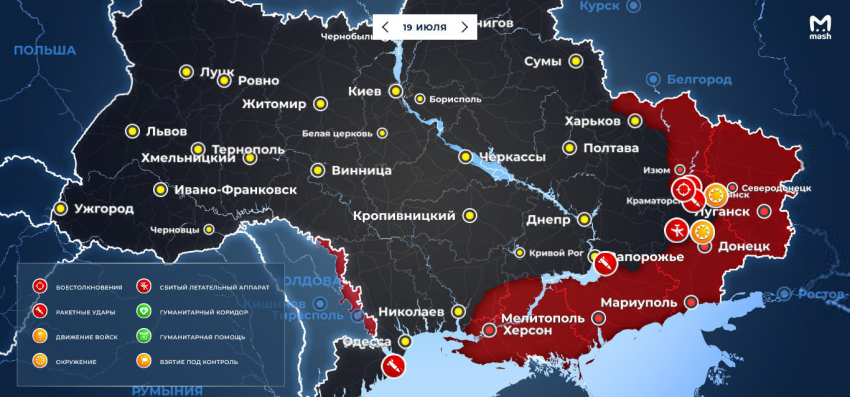 Обновленная карта боевых действий на Украине на 21 июля 2022 года