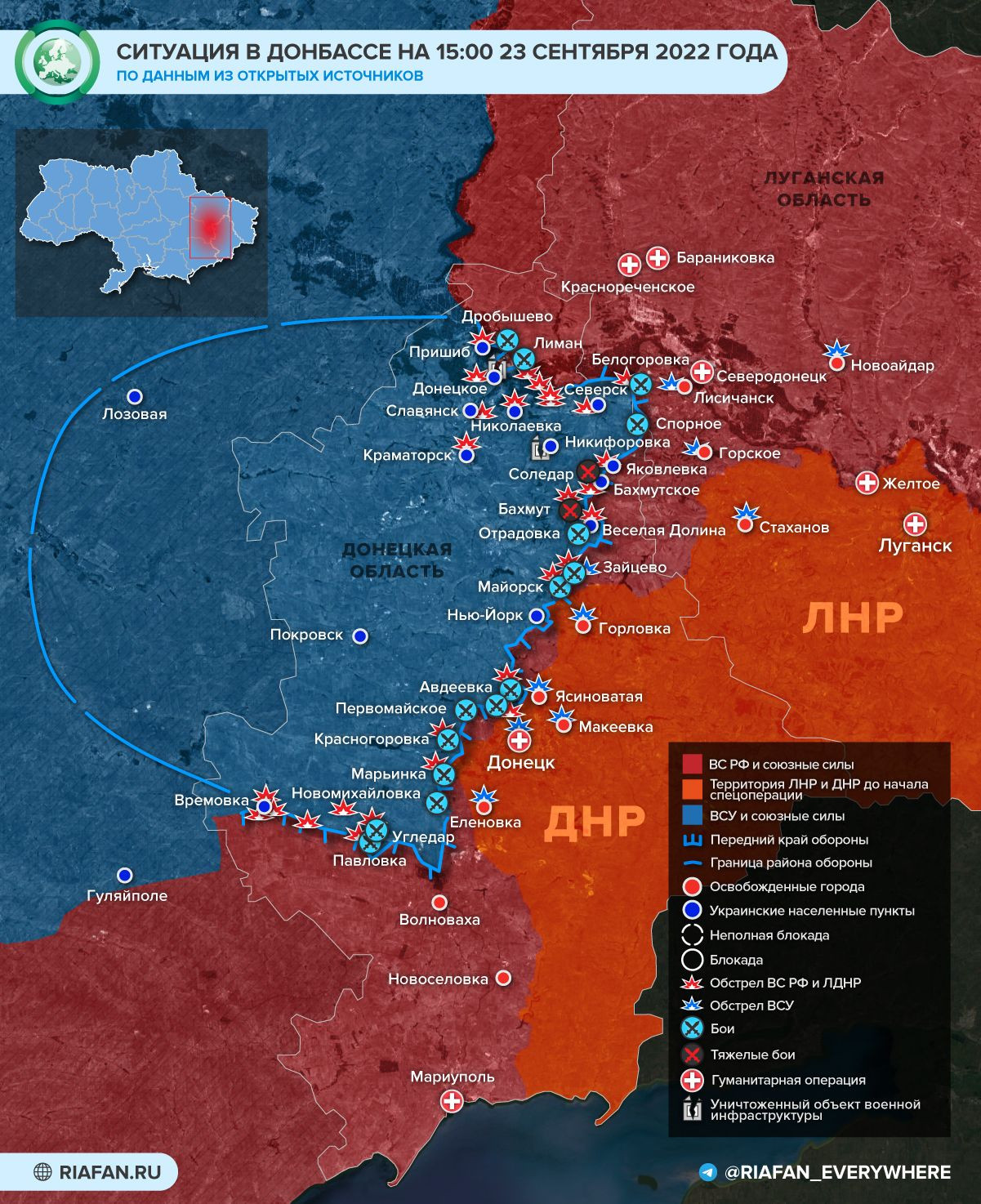 Обновленная новая карта боевых действий в Донбассе по данным на 24 сентября — Минобороны обновило новую карту боевых действий 24.09.2022