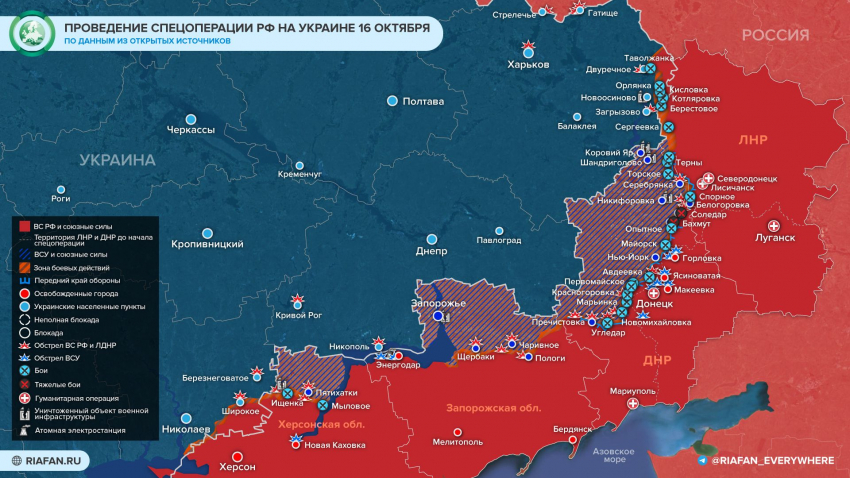 Обновленная новая карта боевых действий на Украине по данным на 17 октября — Минобороны обновило новую карту боевых действий 17.10.2022