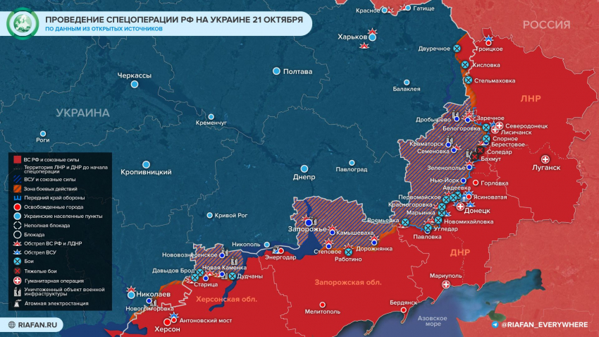 Обновленная новая карта боевых действий на Украине по данным на 22 октября — Минобороны обновило новую карту боевых действий 22.10.2022