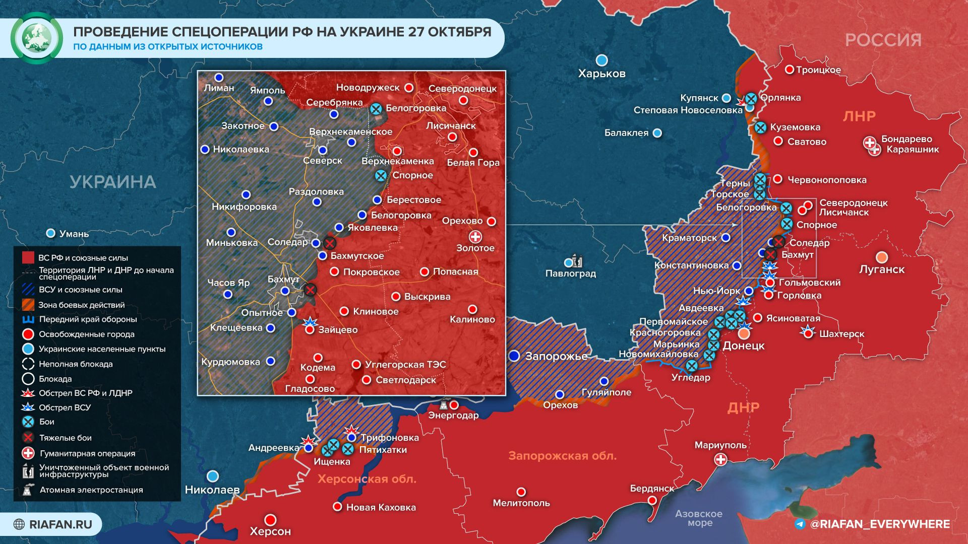 Обновленная карта боевых действий на Украине на 27 октября 2022 года, новый этап в разрушении энергетической системы Украины