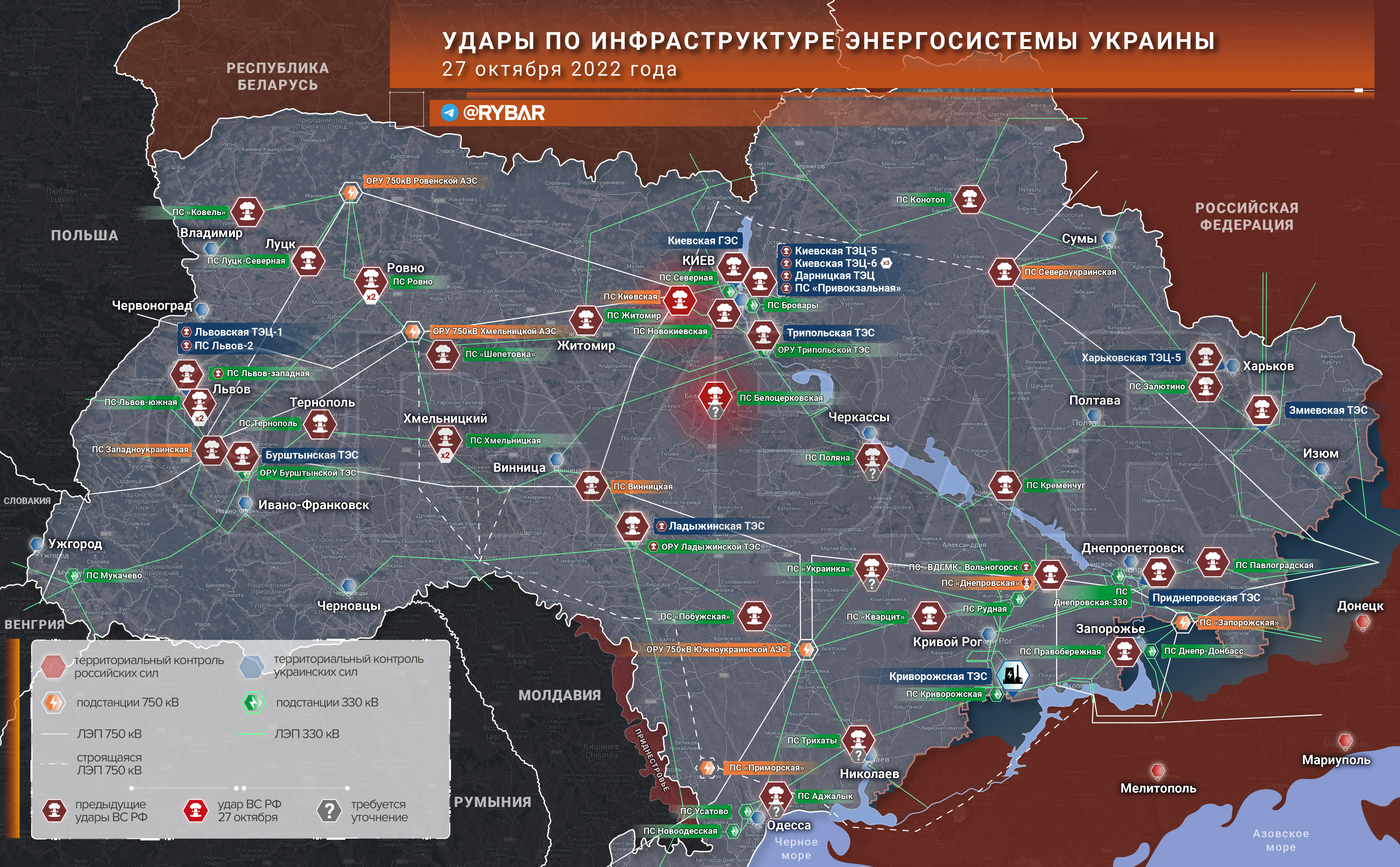 Удары ВС РФ по энергетической системе Украины 27 октября 2022 года: анализ Рыбаря