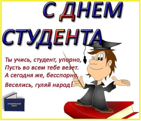 Тех, кто был когда-то студентом, и тех, кто таковым является сейчас, поздравляем с этим замечательным днем. Пусть бывшие студенты вспомнят бесшабашные годы учения, полные авантюризма и надежд и отметят этот день так же весело, как прежде. А нынешним студентам желаем успехов, новых открытий и достижений. Вы — наше будущее. Перенимайте лучшее у старшего поколения и вносите в жизнь свое, новое.