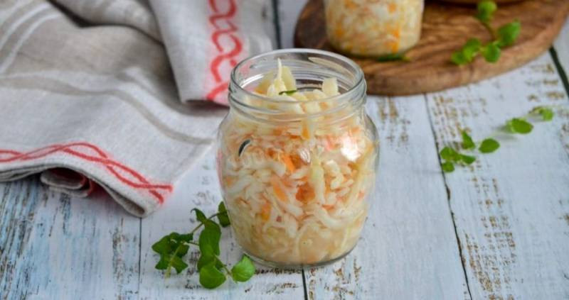 - Капусту перемешивают и пережимают с морковью до тех пор, пока не образуется сок. Чтобы не допустить ошибки с количеством используемой соли, продукт следует пробовать на вкус.