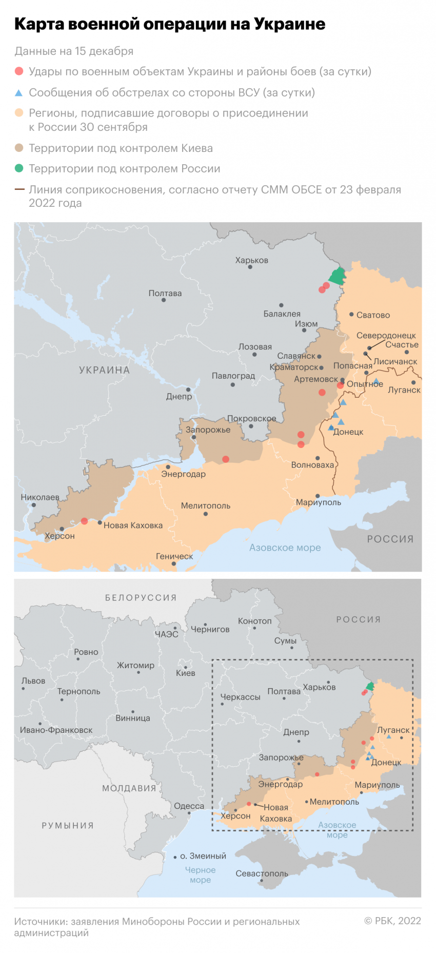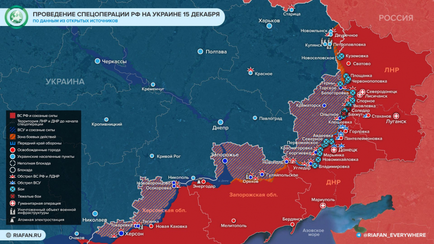 Обновленная карта военной операции на Украине на 16 декабря 2022 года: массированный ракетный удар по объектам на Украине